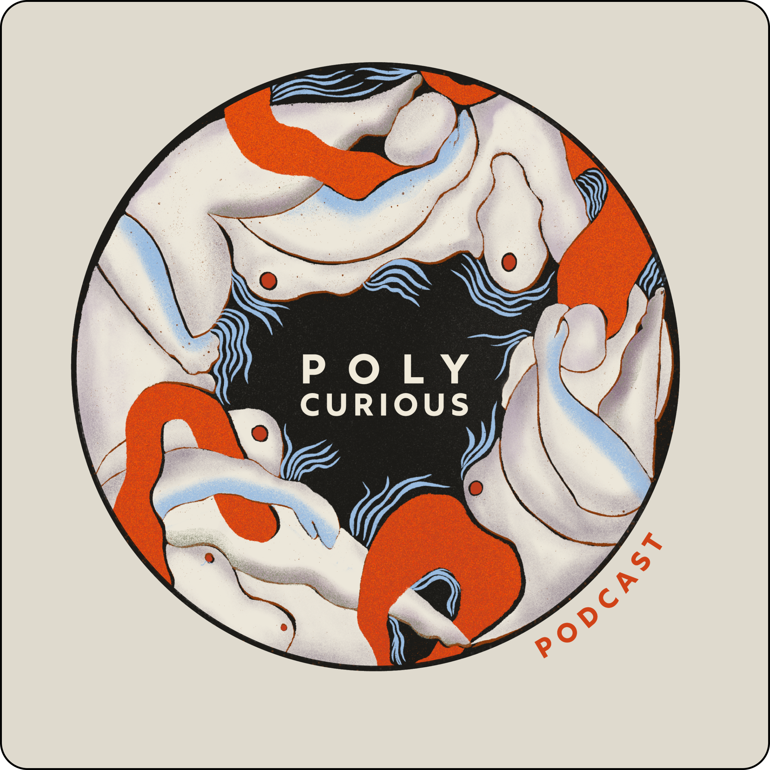 Polycurious Podcast cover art was created as a visual invitation to those who are curious. Embracing figures, organic shapes, fluid movement, and continuous lines, create an intimate scene that mirrors the fluidity and intimacy explored in each episode.